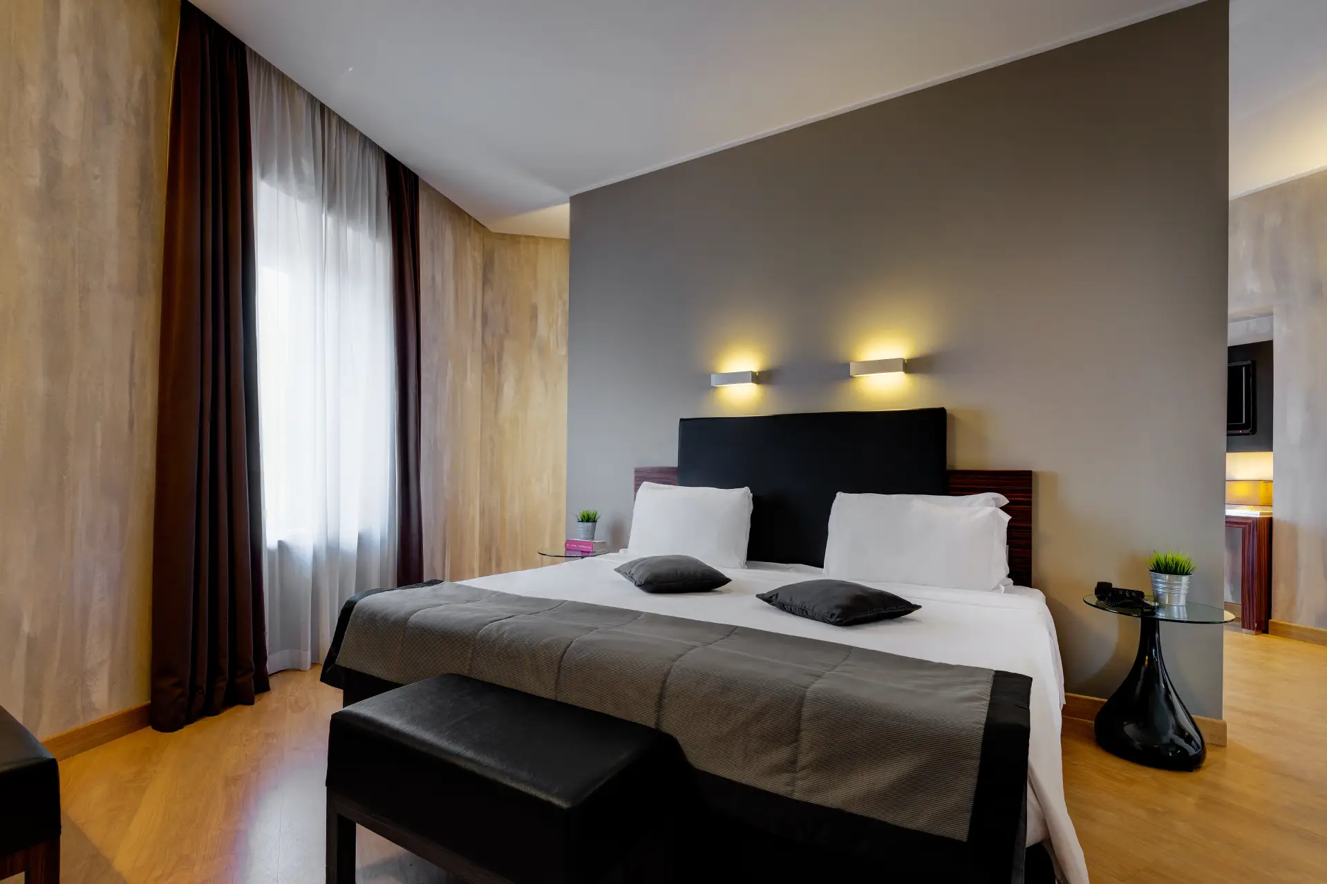 Spacious and comfortable, this room boasts a welcoming living area and an elegant wooden floor, which gives the room warmth and refinement.